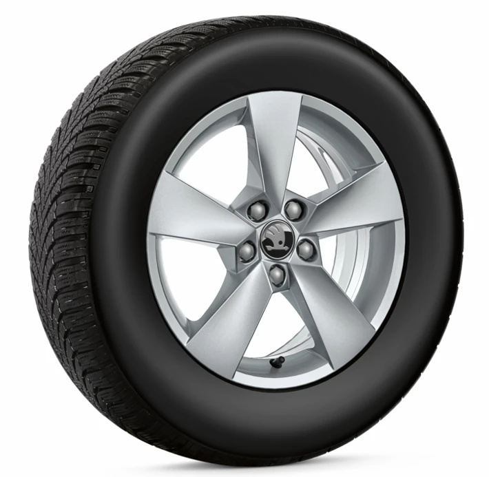 Komplet zimskih platišč, ki ga sestavljajo štiri 15-palčna aluminijasta platišča “Škoda Hadar” z zimskimi pnevmatikami Bridgestone Blizzak LM005 dimenzij 185/65 R15 88T.