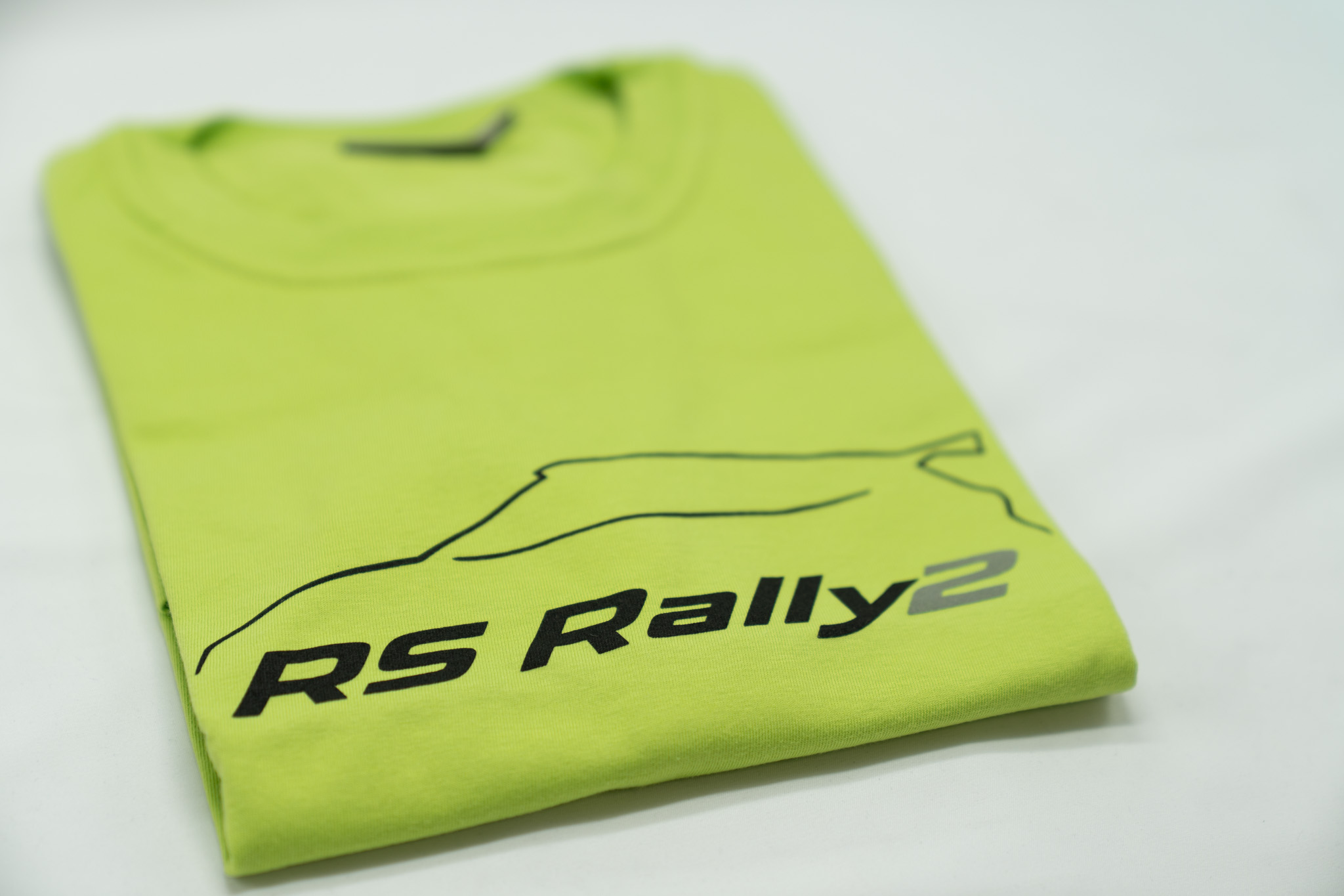 Moška športna majica s potiskano silhueto avtomobila in odsevnim tiskom “RS Rally 2” na sprednji strani.