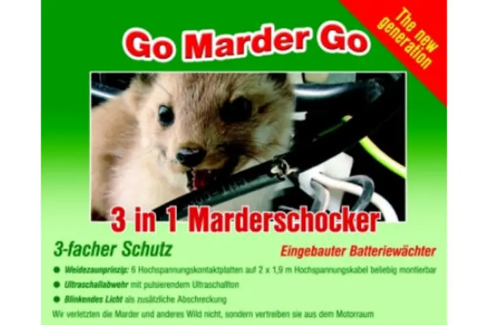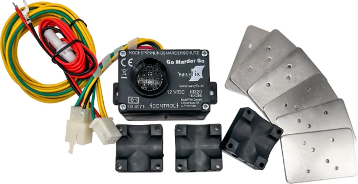 Profesionalna naprava odganja kune z visokonapetostnimi ploščami, ki so električno napolnjene do približno 200-300 V / DC s pomočjo električnega udara v motornem prostoru motornega vozila (le šibki tokovi, ki žival le preženejo) in z močnimi, agresivno pulzirajočimi ultrazvočnimi toni. Ploščo lahko prosto namestite.