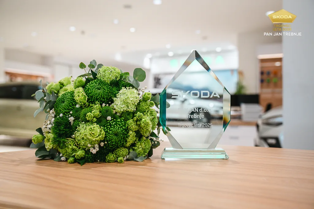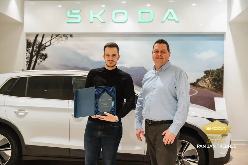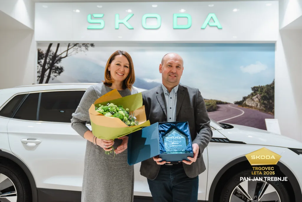 Pan Jan Trebnje je na letni trgovski konferenci Porsche Slovenija prejel naziv Škodin Trgovec leta 2025. To je že petič, da je avtohiša Pan Jan prejela to prestižno priznanje, kar potrjuje, da je prodaja vozil Škoda pri nas sinonim za najboljši odnos do strank, hitro izvedbo in zanesljivo podporo.